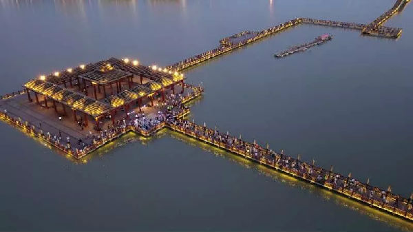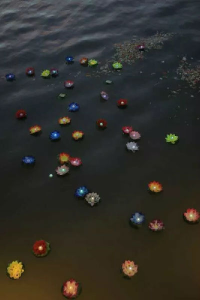 荷花燈載著人們的美好祝福,飄向遠(yuǎn)方…