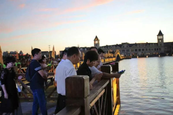 天堂墓園全體員工在馬鑫董事長帶領(lǐng)下無償為這次大型公益活動捐送7000盞河燈…