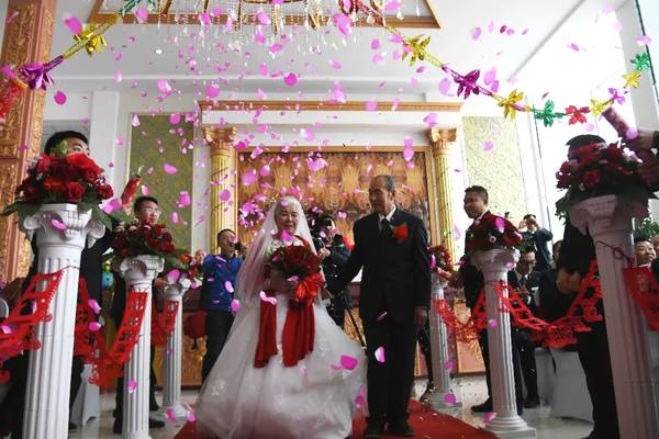 接待這對(duì)老夫妻的工作人員說,“大爺反復(fù)說,老伴兒12歲就認(rèn)定他這個(gè)人,62年了,老伴兒一輩子都在照顧這個(gè)家,有生之年想在自己選擇的長(zhǎng)眠之地再辦一場(chǎng)婚禮,彌補(bǔ)當(dāng)年的遺憾?!?/p>