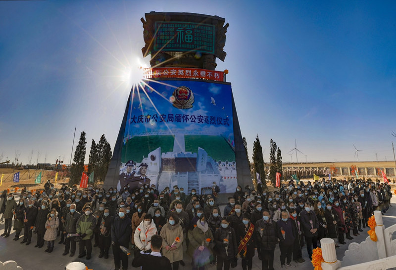 為了慶祝建黨一百周年,在清明節(jié)來臨之際,大慶市志愿服務(wù)聯(lián)合會(huì)發(fā)出祭掃大慶公安英烈倡議書第二天,讓區(qū)區(qū)委,區(qū)政府領(lǐng)導(dǎo)不忘初心,牢記使命,高度重視,精心安排。由區(qū)委常委,區(qū)委副書記張?bào)w忠牽頭負(fù)責(zé),區(qū)民政部門組織全區(qū)各單位代表200多人今天上午集體統(tǒng)一乘車來到大慶公安英烈園(大慶天堂墓園內(nèi))為保衛(wèi)大慶經(jīng)濟(jì)發(fā)展,社會(huì)和諧穩(wěn)定,人民安居樂業(yè)而英勇犧牲的大慶市公安英烈敬獻(xiàn)鮮花,默哀致敬,鞠躬掃墓。隨后又給安葬在天堂墓園因公犧牲的公安民警祭奠掃墓。