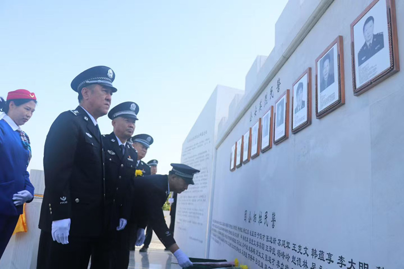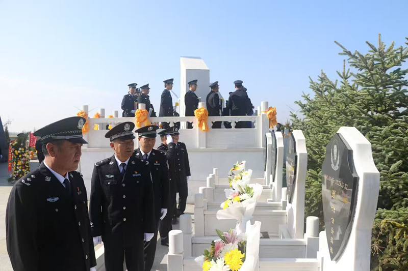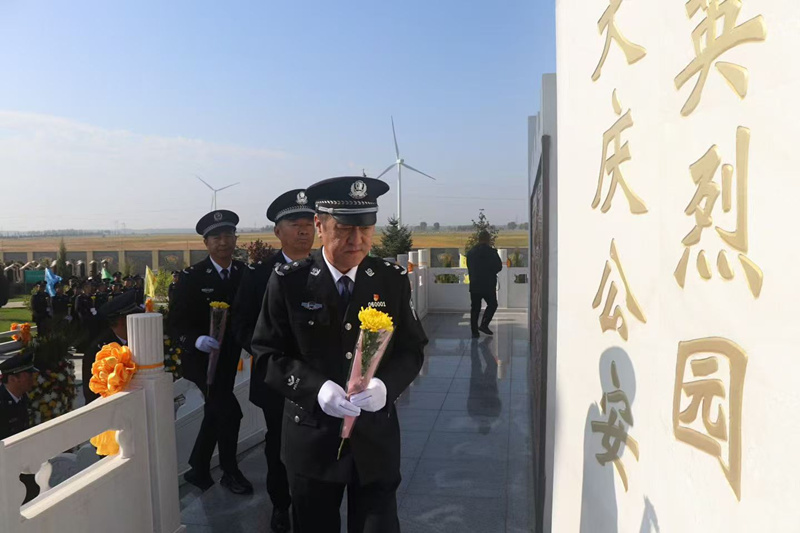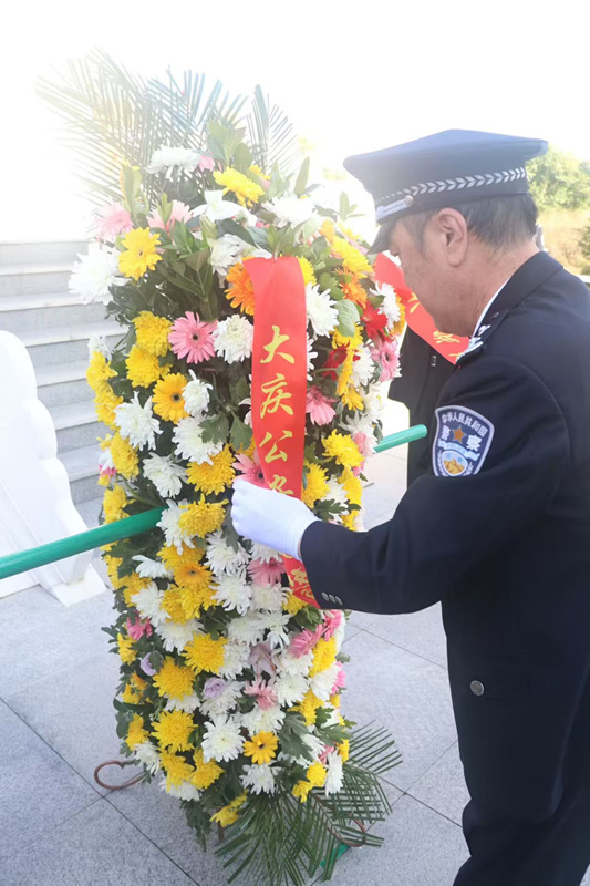 隨后,宋市長與全體公安干警在英烈園前舉行重溫入警誓詞,并向公安英烈花籃整理鍛帶,獻(xiàn)花致敬。宋市長引領(lǐng)全體公安干警圍繞英烈碑一周,并脫帽深深地向每個(gè)英烈逐個(gè)敬禮,以此懷念昔日戰(zhàn)友……