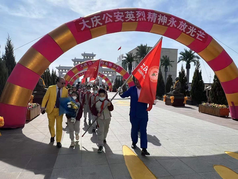 讓北二小手持鮮花來到大慶公安英烈園給公安英烈掃墓
